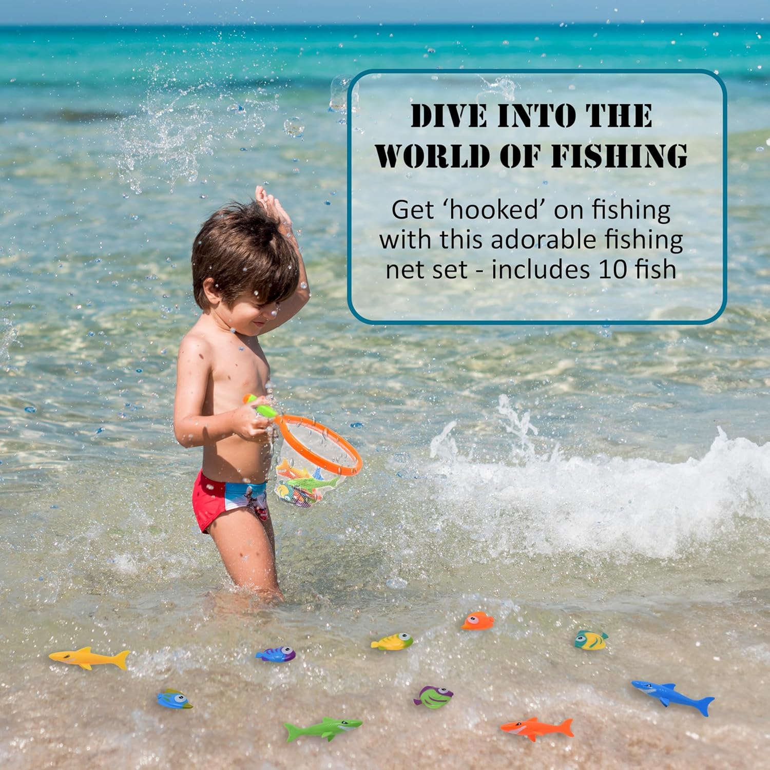 Toy Fishing Net for Bath – Shark & Fish Dive Game, 10-Piece Set